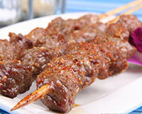 烤牛肉串、烤大片腰花、羊肉串、烤脆骨、烤排骨、烤香肠、烤鸡爪等