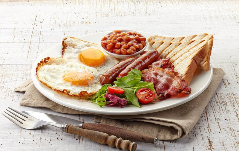 英国的下午茶非常有名,这个笼罩着贵族气息的国度,早餐也同样富有盛名,甚至已经超脱了“早餐”的原意,而是在更广的层面上代表了英国独特生活方式的一部分。英国有些旅店甚至以“完全的英式早餐”作为卖点招揽顾客。英式早餐通常包括:主食(烤番茄、炒鸡蛋、香肠、咸肉、蘑菇、炸薯块、茄汁黄豆),面包(土司、可颂、丹麦卷、炸面包),副食(麦片粥、麦片),饮料(咖啡、牛奶、果汁、茶)。另外值得一提的是,英国还有专门的“早餐茶”,和大家熟悉的伯爵茶一样,也是一种拼配红茶,喝的时候加牛奶和糖,或者柠檬片。
