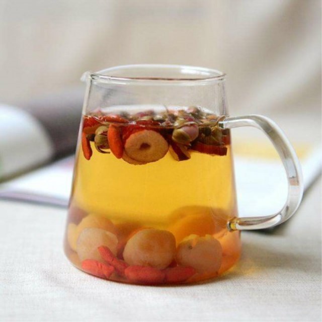 原 料:枸杞5g、龙眼肉3g、绿茶3g、冰糖10g。
