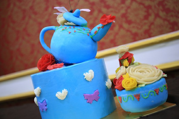 《美女与野兽》里的茶壶管家也来凑热闹,他也想为这浪漫的气氛锦上添花。他将清茶变成盛开的花朵,装满了所有茶杯。绅士很感激它的付出,为了表示自己的敬意他将自己做的西点蝴蝶节送给了茶壶管家。广州新东方:西点师的世界 被幸福和甜蜜包裹着