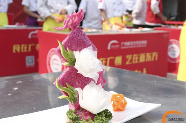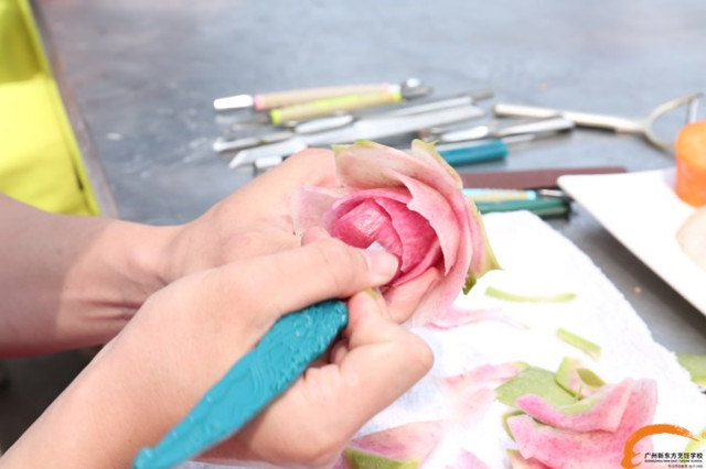 4月1日,广州新东方烹饪学校举办了雕刻比赛,比赛中,新东方学子们大展绝技,在他们的巧手雕刻下,原本完完整整的果蔬瞬间脱胎换骨,华丽变装,争奇斗艳,完美逆袭。果蔬雕刻大赛展魅力 逼真作品惊艳校园