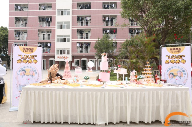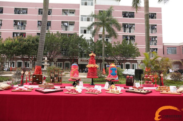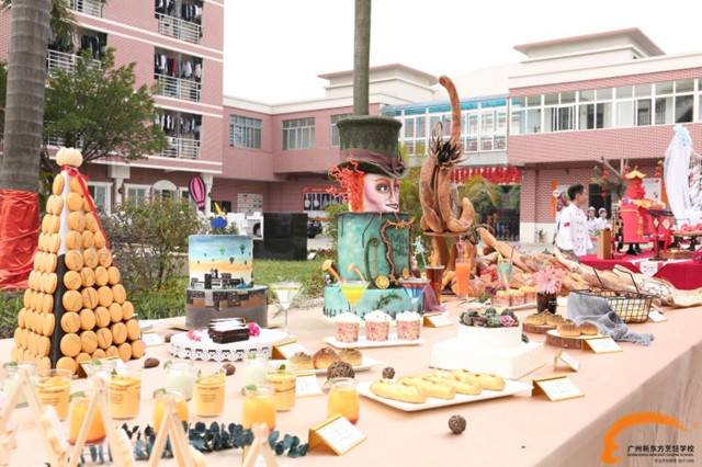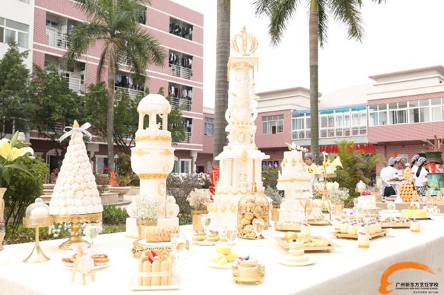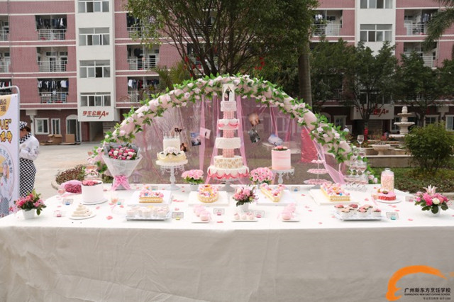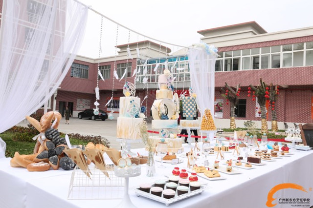 寻觅着这醉人的气息前进,就会发现散发甜蜜的不止爱情,还有西点。原来广州新东方烹饪学校番禺校区正在举办西点展台决赛,经典西点专业的同学们正在点缀自己的参展作品和装饰展台,这甜蜜的气息皆是来自这些争奇斗艳的创意作品,形象逼真,栩栩如生,放眼看去像是走进了一个梦幻花园。充满诗意的春天里,让我们跟西点来一场梦幻的约会