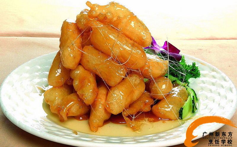 拔丝苹果:香甜焦脆,外观精美,刚上餐桌就成为大家瞩目的焦点,但长时间不翻动,以后就怎么也夹不起来了。