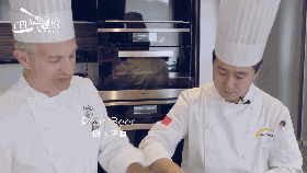 面对“抢戏”的马老师,巴卡尼尼先生倒也显得非常大度,甘当配角地协助马老师把炖好的猪肘放进烤箱。