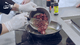 和之前初步处理牛筋肉的手法相似,巴卡尼尼先生熟练地煎制猪肘、切配辅料、添加调料,一切都看起来似乎并没有什么不一样。然而,专业的马老师却敏锐地捕捉到了对方烹饪技法的特别之处。