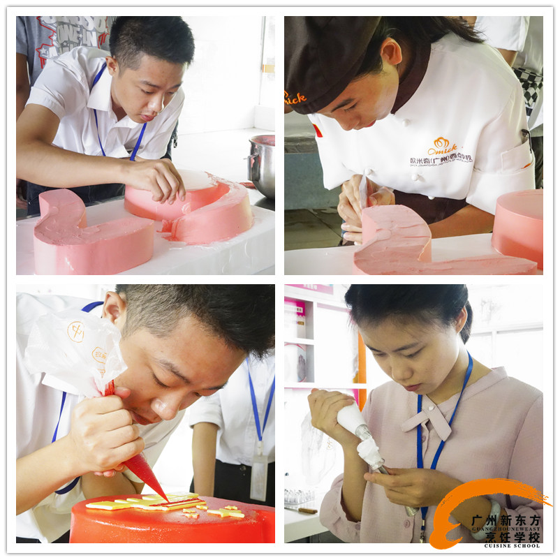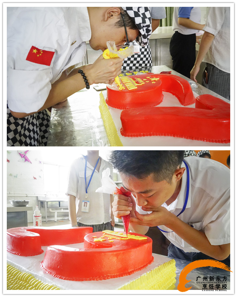 在大家的通力合作下,祖国母亲的生日蛋糕终于做好了,这两个蛋糕不仅代表了广州新东方烹饪学校对祖国生日的美好祝愿,同时还代表了我们对祖国那无尽的热爱!
