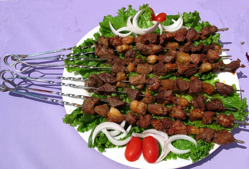 在新疆最常见的烤羊肉(串)是用铁钎子串的,而且喀什的价格是烤好后大拇指第一个指节那么大的肉块四个一串,价格5元。很多内地10块钱一大把那种多是鸭肉。