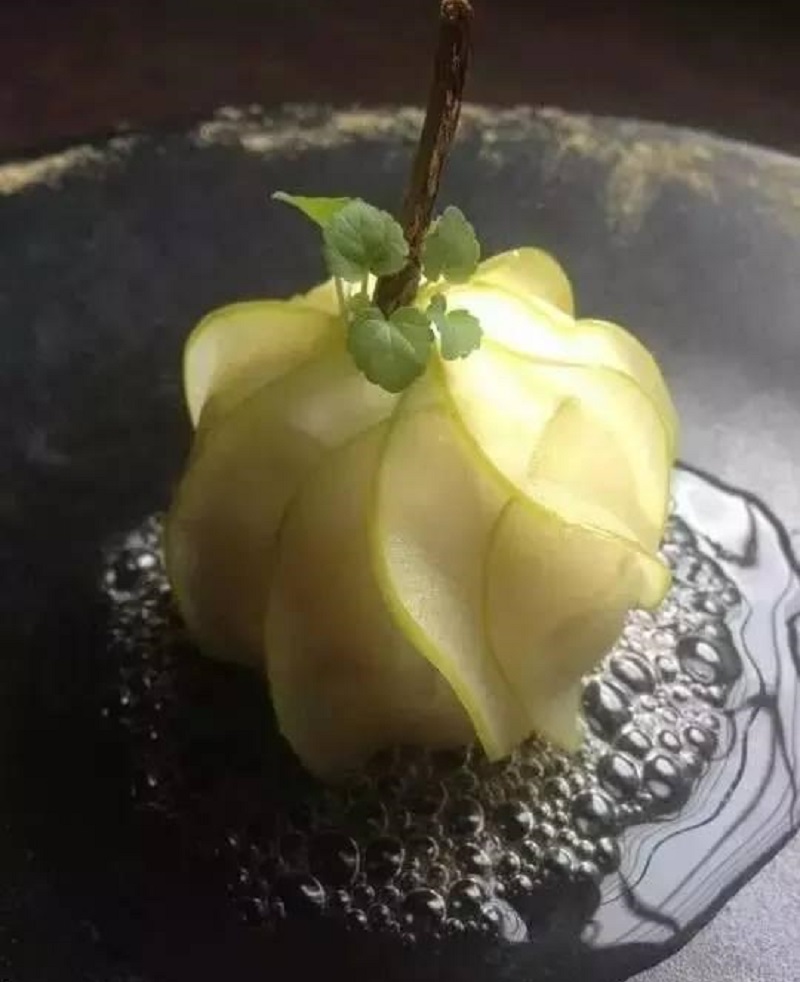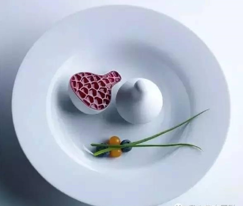 在西餐中很常见,如今中餐也经常使用,这种形式需要设计感和想象力,错落有致的立体形状可呈现时尚现代感。