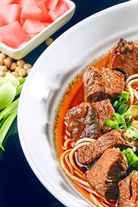 牛腩的鲜嫩入味以及肥肠的鲜香有嚼劲才是面之精粹。