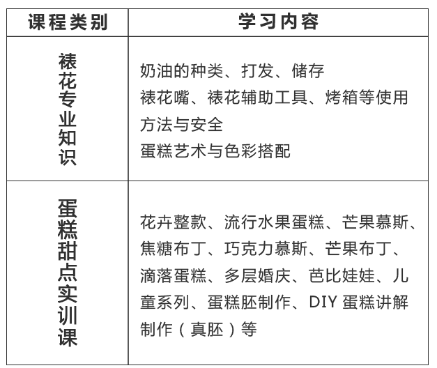 想要熟练了解裱花专业基础知识,日后想去西饼店、西点企业担任专业蛋糕裱花师一职或者是对蛋糕甜点有兴趣想要创业的人群。