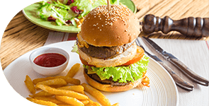 公司三文治、鸡肉汉堡、美式热狗、牛肉汉堡等。