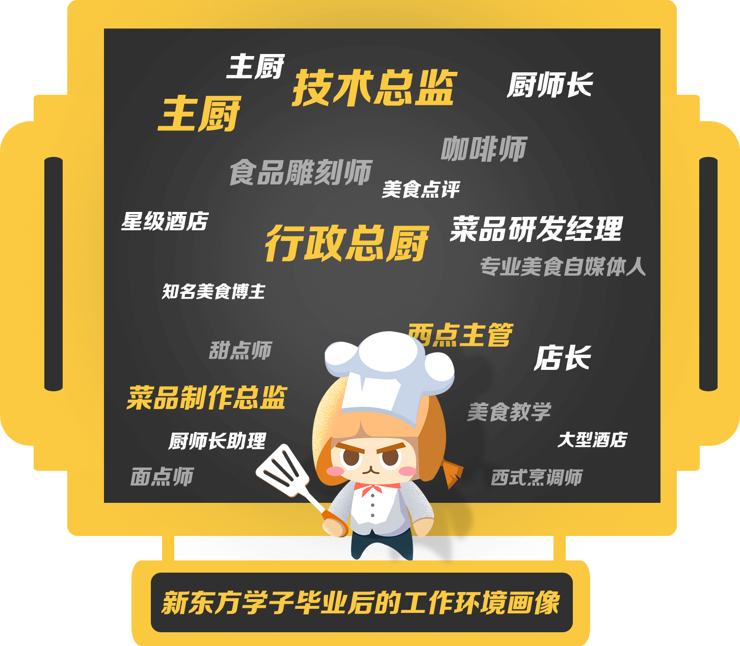 新东方烹饪教育研究院对教育教学模式、教材及菜品不断进行 研发和创新,保证专业设置紧跟用人单位的需求,轻松就业。